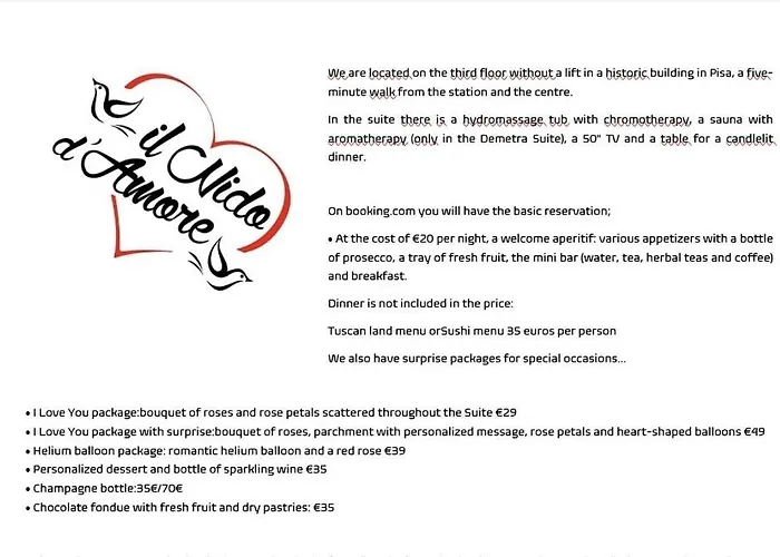 Dit La Suite Pisa met 2 sterren met een kuursalon bevindt zich op ongeveer 5 km van de luchthaven Pisa Galileo Galilei.